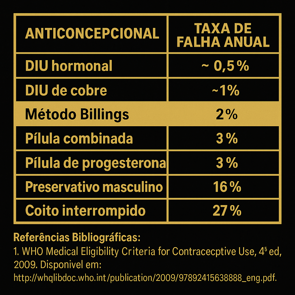 A eficácia do método Billings em comparação com métodos contraceptivos artificiais.